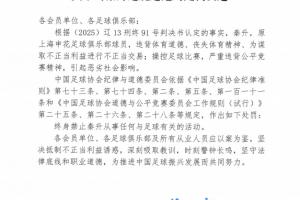 直播吧:足协裁判评议不支持国安申诉主张 不采信非官方视频证据