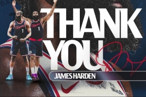 快船官方感谢哈登:“NBA历史上最优秀的球员之一,詹姆斯(哈登),你永远都是快船国度的一份子!”