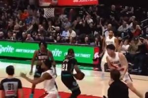 GIF-这比杨瀚森还高兴啊!杨瀚森上篮得分 韦斯利激动挥拳庆祝!