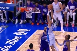 高难度!拉梅洛·鲍尔强攻内线 失衡漂移抛投打成2+1