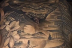 巴尔科拉最近为自己背部增添了新纹身,这幅以日本文化为主题的纹身覆盖了他的整个背部,主图案为一个巨大的武士面具,俯瞰着寺庙、东瀛山水和手持利剑的武士。
