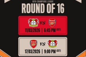 体育资讯2月27日讯 欧冠1/8决赛,阿森纳对阵勒沃库森,两回合比赛时间已经确定。