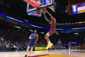 灵犀一点!布兰登·米勒单手将球拨给怀特 后者三分洞穿篮心