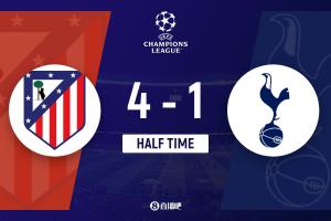 体育资讯3月11日讯 北京时间3月11日1:30,欧冠1/8决赛首回合,马德里竞技在利雅得航空大都会球场迎战托特纳姆热刺。上半场,热刺门将金斯基连送大礼后导致被换下,略伦特、格列兹曼、阿尔瓦雷斯和勒诺尔芒先后为马竞进球,波罗扳回一城,马竞半场4-1领先热刺。