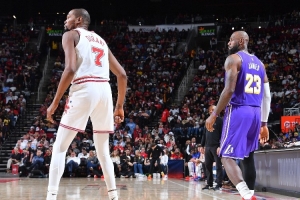 本场比赛,湖人球星詹姆斯上场34分钟,14投13中得到30分5篮板2助攻1抢断1盖帽;火箭球星杜兰特上场38分钟,11投7中得到18分6篮板4助攻2抢断。