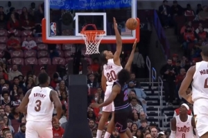 这滞空逆天!布里奇斯超远距离滑翔拉杆换手上篮 黄蜂领先5分!