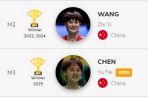 世界羽联官网显示:陈雨菲、蒋振邦/魏雅欣组合退出亚锦赛