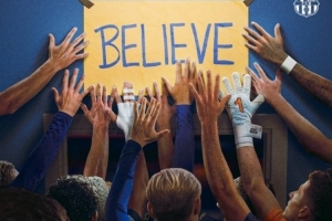 海报中,“Believe”(相信)一词格外醒目,巴萨官推还配文“相信方能感受活着”,这句话引用了美国喜剧《足球教练》中的台词。