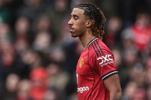 身体拼不过!加纳乔护球时与达洛特对抗倒地,裁判没有吹犯规