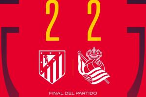 第83分钟,阿尔马达禁区内回做,阿尔瓦雷斯接球转身爆射破门,马竞2-2皇家社会。↓