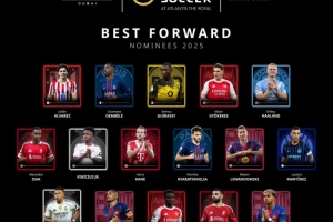 环球足球奖最佳前锋候选: