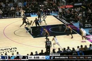 灵犀一点!布兰登·米勒单手将球拨给怀特 后者三分洞穿篮心