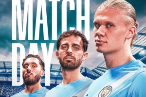 曼城官方社媒发布了为此役制作的海报,哈兰德、B席、谢尔基出镜。