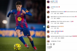 体育资讯11月30日讯 巴萨在本轮西甲焦点战主场3-1逆转阿拉维斯,中场佩德里替补出战完成复出。