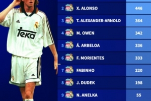 体育资讯11月5日讯 作为欧洲足坛两大豪门,利物浦和皇马曾吸引诸多球星效力。德国转会市场盘点了在两队均有效力的球员总出场次数排行,麦克马纳曼为两队共出场522次居首,皇马主帅阿隆索则以446场位居次席。