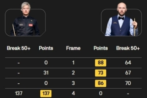 全场比赛,扎克-舒尔第打出六杆50+(64、67、70、81、80、78),尼尔-罗伯逊在第四局打出单杆137分。