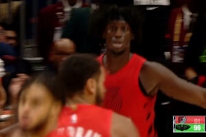 这不看回放?三球用手扒阿德巴约脚后跟致其倒地受伤 已回更衣室