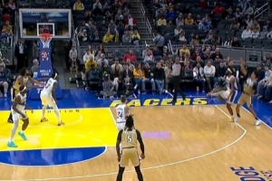 灵犀一点!布兰登·米勒单手将球拨给怀特 后者三分洞穿篮心