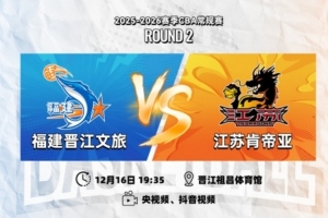 12月16日19:35,2025-26赛季CBA常规赛第二轮,江苏肯帝亚将奔赴客场,对阵福建晋江文旅。