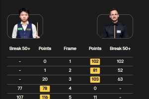 惨遭9连鞭!高阳4-1领先后4-10不敌瓦菲,无缘世锦赛32强正赛