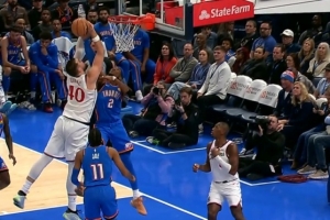 动作有点大!克林根拼抢时拉拽狄龙脖颈 被吹一级恶意犯规