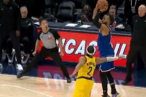 动作有点大!克林根拼抢时拉拽狄龙脖颈 被吹一级恶意犯规