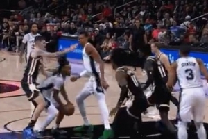 啊这……黄蜂本季常规赛客战热火 三球倒地后也抓过阿德巴约小腿