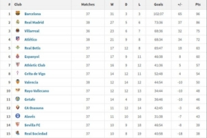 体育资讯12月23日讯 2025年度至今,巴萨在少赛一场的情况下取得31胜3平3负积96分位列西甲榜首,皇马以27胜5平6负积86分排名第二,排名第三和第四的分别是比利亚雷亚尔和马竞。