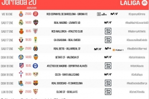 体育资讯12月23日讯 西甲公布了第20轮比赛的开球时间,1月17日21点皇马vs莱万特,1月19日4点皇家社会vs巴塞罗那。