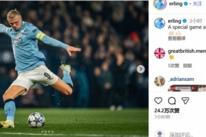 在社交媒体上,哈兰德晒出了自己的赛场照,并写道:一场面对特别俱乐部的特别比赛。