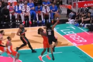 动作有点大!克林根拼抢时拉拽狄龙脖颈 被吹一级恶意犯规