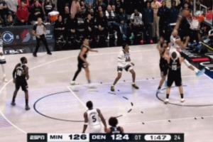 GIF-兰德尔外线三分不中 戈贝尔大力补扣扣飞了