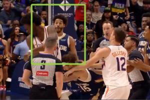 动作有点大!克林根拼抢时拉拽狄龙脖颈 被吹一级恶意犯规