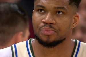 这不看回放?三球用手扒阿德巴约脚后跟致其倒地受伤 已回更衣室