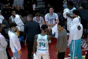 啊这……黄蜂本季常规赛客战热火 三球倒地后也抓过阿德巴约小腿