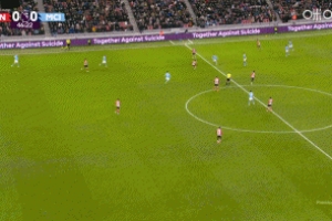 体育资讯01月02日讯 英超第19轮,桑德兰主场迎战曼城,比赛第47分钟,谢尔基妙传,萨维尼奥抢点铲射打高了。
