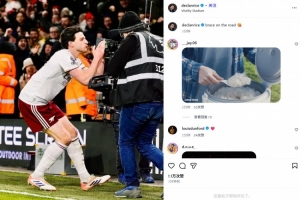 他也在赛后通过社媒晒出自己亲吻摄像机的庆祝照,并配文:“客场双响!”