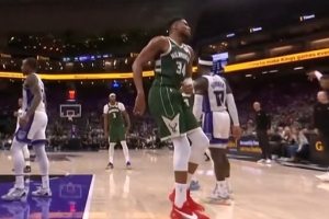 这不看回放?三球用手扒阿德巴约脚后跟致其倒地受伤 已回更衣室