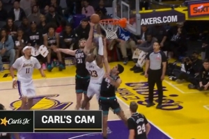 GIF-詹姆斯假手递手上篮得分并造成犯规