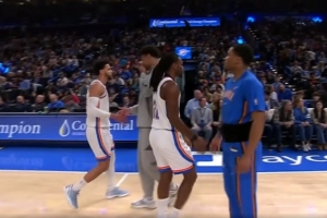 这不看回放?三球用手扒阿德巴约脚后跟致其倒地受伤 已回更衣室