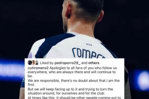 体育资讯01月08日讯 英超第21轮比赛,热刺客场2-3不敌伯恩茅斯,热刺后卫罗梅罗社媒发文,其中表示本应有其他人站出来发声,他们只会在顺利时出现去说一些谎言。