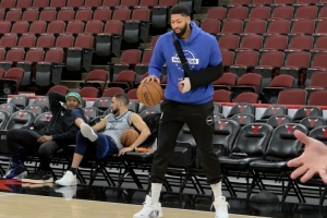 记者Mike Curtis报道,独行侠刚在结束了赛前的投篮训练。安东尼·戴维斯也出现在了球馆,看起来心情不错,尽管他的左臂被吊带固定,手部也缠得很厚。
