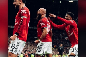 本场比赛曼联前锋齐尔克泽因伤缺战,赛后他也在个人社媒晒出队友姆伯莫、B费等庆祝进球的照片,配文爆粗:“TMD进球了!”