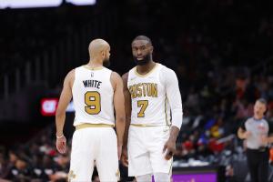 灵犀一点!布兰登·米勒单手将球拨给怀特 后者三分洞穿篮心