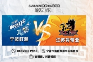 1月25日19:35,2025-26赛季CBA常规赛第十九轮,江苏肯帝亚前往浙江宁波,进行对阵宁波町渥的二番战。